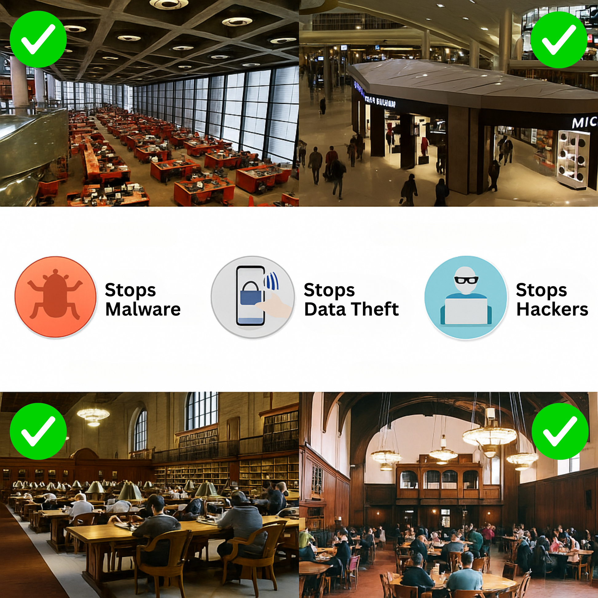 DataShield™ — Veilig opladen op openbare plekken. Voorkom datadiefstal en virussen wanneer je oplaadt in luchthavens, treinen, hotels of cafés.