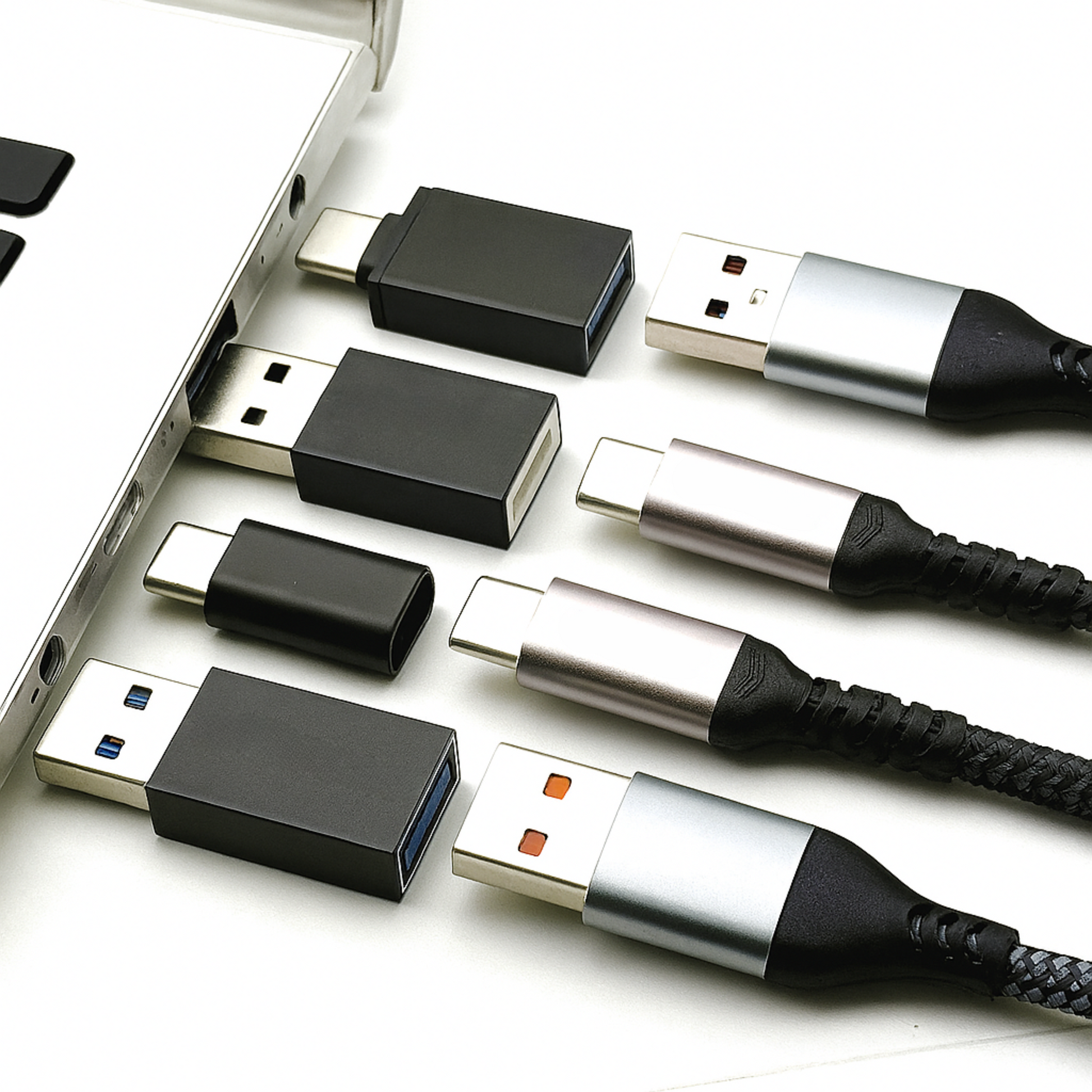 - Varianten: USB-C → USB-A, USB-A → USB-C, USB-A → USB-A, USB-C → USB-C